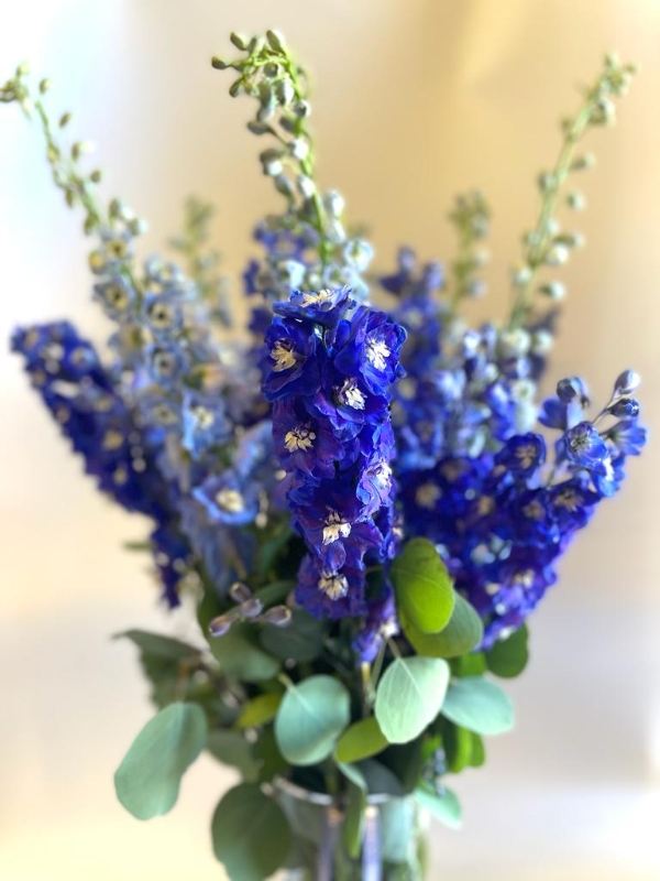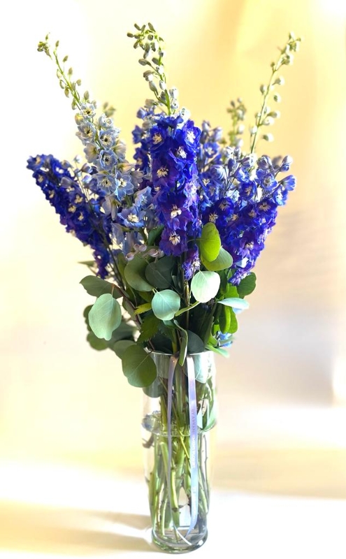 A beautiful vase of Delphinium blooms sure to be received with total delight.
