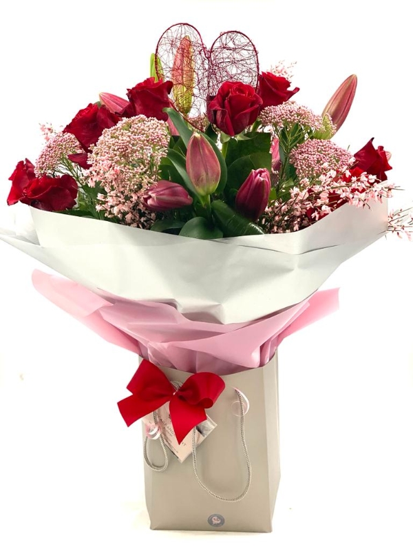 Roses and Lilies, the perfect combination , to show your affection for the one you love.