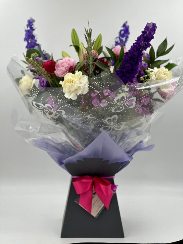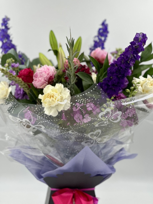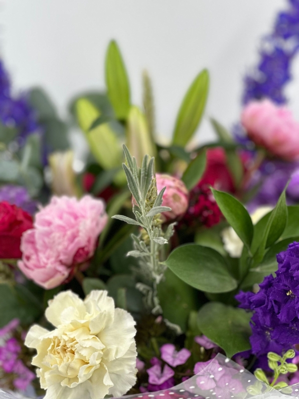 A vibrant colourful bouquet filled with an array of summer blooms,