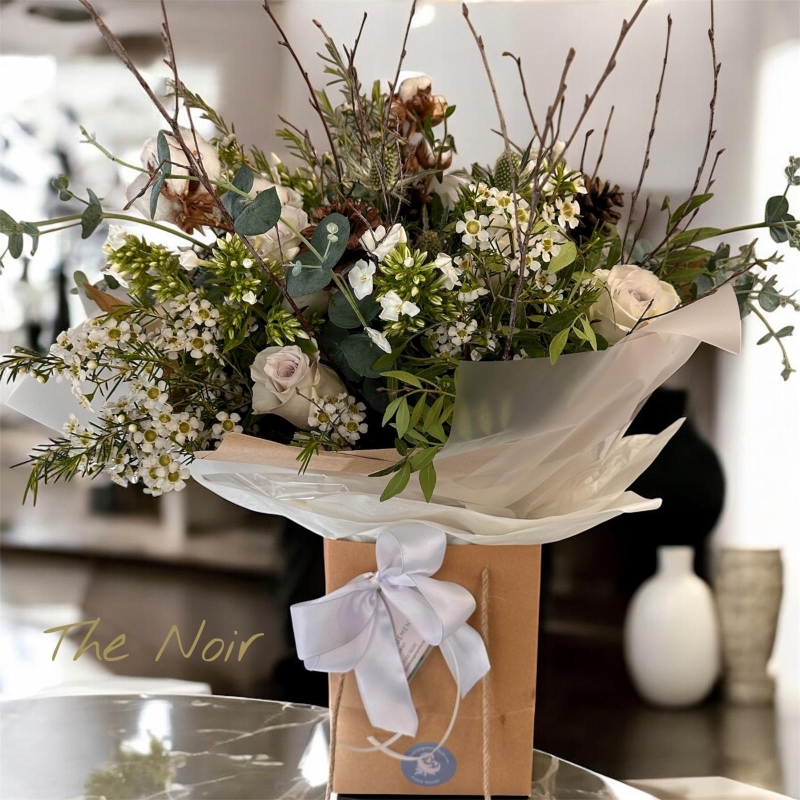 This festive hand-tied floral arrangement is expertly crafted and presented in a practical water bag, making it both beautiful and easy to care for. Designed to capture the elegance and tranquillity of a white Christmas, the bouquet features premium seasonal white roses as its focal point. Complementing the white roses, the bouquet incorporates soft, textured foliage to add depth, contrast, and a gentle, natural feel.